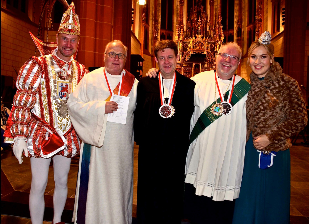 CC-Präsident Michael Laumen sprach von einem „stimmungsvollen Einstieg in die 5. Jahreszeit“ und zollte allen Mitwirkenden große Anerkennung: „Chapeau!“ Nicht fehlen durfte am Ende des Gottesdienstes auch das Verleihen von Orden und natürlich ein dreimal Düsseldorf Helau!