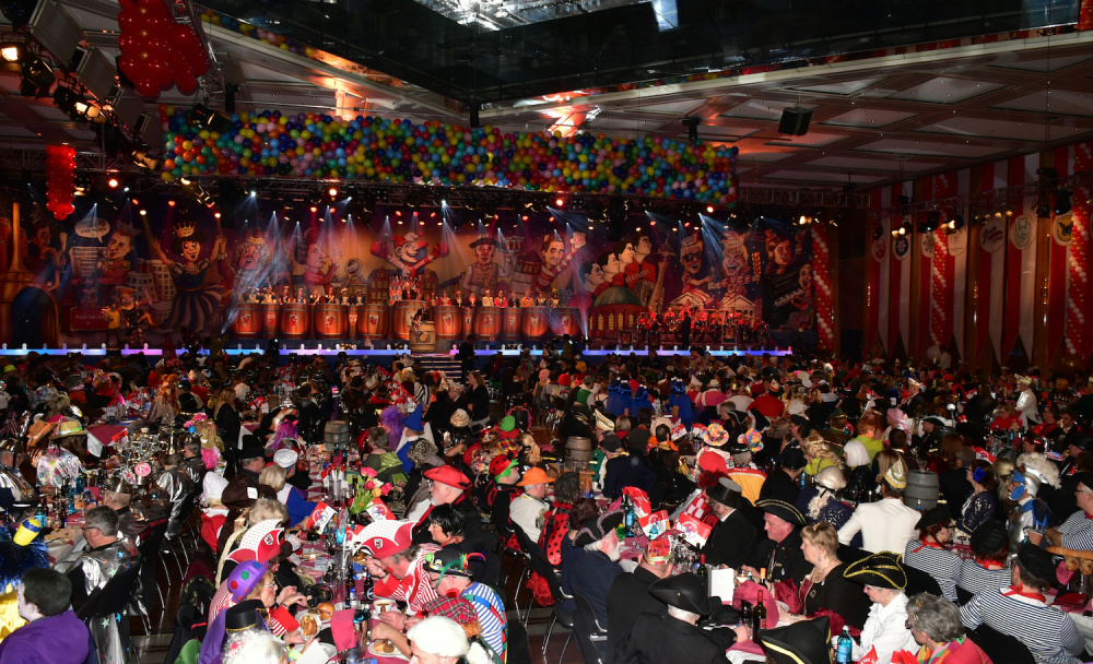 Die Rolle des Eisbrechers übernahm Jürgen Hilger-Höltgen, der als Meister der Büttenrede in der Rolle des „Fimmänchen“ nicht nur „Bonsai-OB“ Thomas Geisel, sondern auch die Bundestagwahl, die schier unendlichen Sondierungsrunden, den türkischen Ministerpräsidenten Erdogan und - als Höhepunkt - den nordkoreanischen Diktator Kim Jon Un mit einem extra getexteten Lied („Auch wenn es euch nicht gefällt, bald bin ich der Herr der Welt“) aufs Korn nahm. Zum Tanzen und Schunkeln animierte die bunt und abwechslungsreich kostümierten Gäste – unter ihnen auch der Mainzer Oberbürgermeister Michael Ebling und Landtagspräsident André Kuper – die Band Kokolores, die in dieser Session auch mit dem Mottolied „Jeck erst recht“ für Furore sorgt. Mit stehenden Ovationen gefeiert wurde anschließend Christian Pape. Gemeinsam mit seinem Partner Dr. Stefan Bimmermann präsentierte er eine außergewöhnliche Karnevalsperformance, die das jecke Publikum restlos begeisterte.