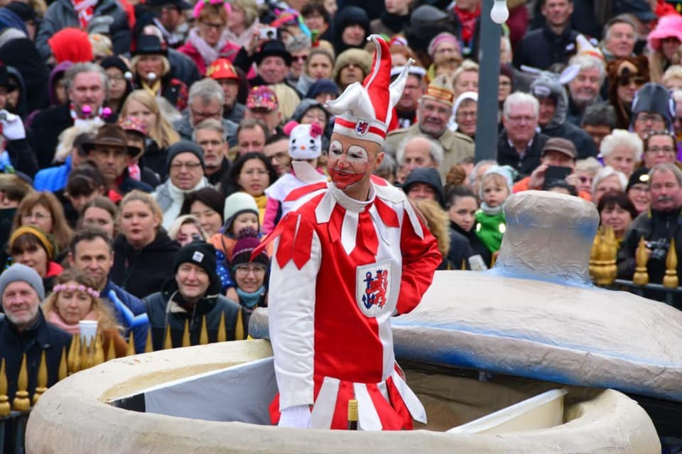 Überraschung am 11.11.: Per E-Roller fuhr Hoppeditz Tom Bauer um 11:11 Uhr emissionsfrei und damit umweltfreundlich auf den Rathausplatz, wo ihn bereis mehr als 5000 gut gelaunte Jecken erwarteten. Erst dann kletterte er in seinen Senftopf, um mit seiner traditionellen Rede den Startschuss zur neuen Karnevalssession zu geben. Rund 30 Minuten lang nahm der Hoppeditz viele Themen und Prominente aufs Korn. So zum Beispiel die mancherorts praktizierte Verlegung von Hoppeditz- Erwachen, die Düsseldorfer Umweltspur, die Mietpreispolitik der Rheinterrasse, Fortunas Vormachtstellung am Rhein und die Stadtstrand-Situation in der Landeshauptstadt. Mit Blick auf die Kommunalwahlen im Jahre 2020 startete Tom Bauer auch eine (erfolglose) Suche nach einem neuen Heiland als Nachfolger von OB Geisel. Das Publikum war begeistert und spendete den Hoppeditz lang anhaltenden Beifall.