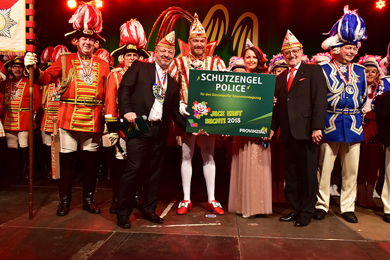 Seit mehr als 35 Jahren eng mit dem Düsseldorfer Karneval verbunden ist die Provinzial Rheinland Versicherung AG. Und in diesem Jahr ist sie erstmals auch mit einem eigenen Rosenmontagswagen live dabei. Dies betonte der Vorstandsvorsitzende Patric Fedlmeier im Rahmen einer bunten Karnevalsrevue, bei der u.a. die Bands De Fetzer, Kokolores und die Swinging Funfares sowie die beiden Prinzengarden für tolle Stimmung unter den etwa 400 jecken Gästen sorgten. Höhepunkt des Empfanges in der Provinzial-Hauptverwaltung war die symbolische Übergabe der Police für die Versicherung der „tollen Tage“ einschließlich des Rosenmontagszuges, des Kinder- und Jugendumzuges und des Kö-Treibens an Prinz Carsten II. und Venetia Yvonne sowie CC-Präsident Michael Laumen. Ebenso wie das Prinzenpaar nutzte CC-Präsident Michael Laumen die Gelegenheit, um sich bei der Provinzial für das herausragende Sponsoring zu bedanken: „Die Provinzial hat uns damit erneut eine große Sorge abgenommen.“ Neben der Police überreichte Fedlmeier dem Prinzenpaar auch einen Spendenscheck. Die Tollitäten sowie CC-Präsident Laumen revanchierten sich bei den Vertretern der Provinzial mit der Verleihung zahlreicher Orden.