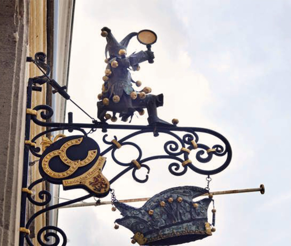 An dieser Stelle ist eine Bebauung bereits seit 1632 urkundlich belegt. Das heutige dreigeschossige, verputzte Gebäude, das wir bewundern, stammt vermutlich aus dem 18. Jahrhundert. Der Eingangsbereich befindet sich in der mittleren Achse der elegant gegliederten Fassade, die insgesamt fünf Achsen umfasst. Die Fassadenöffnungen sind mit stilvollen Natursteineinfassungen versehen, während ein markantes Gesims das Erdgeschoss vom obersten Geschoss absetzt.